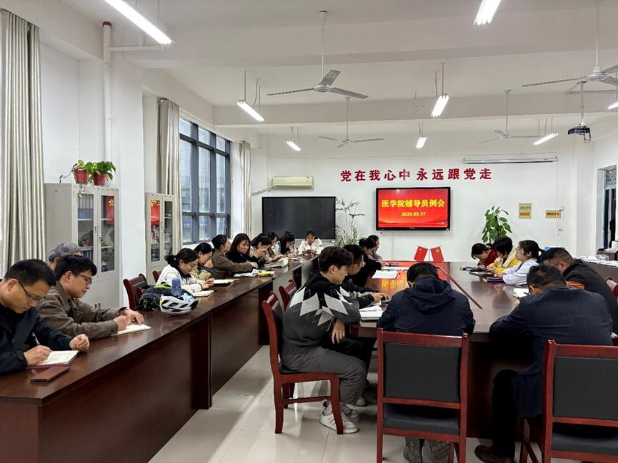 3月27日下午,医学院召开了全体辅导员例会,会议由党总支副书记俞敏主持,全体专兼职辅导员参加。此次会议聚焦学生培养全链条,对学风建设、职业发展、实践教育等重点工作进行全面部署。会上,俞敏首先通报了近期教学巡查反馈,针对课堂纪律、席卡佩戴等突出问题提出要求:严抓考勤制度执行、严管课堂行为规范。针对毕业生春季促就业攻坚行动,会议要求摸清准毕业生职业生涯规划,针对性开展就业指导服务。在创新创业板块,团总...