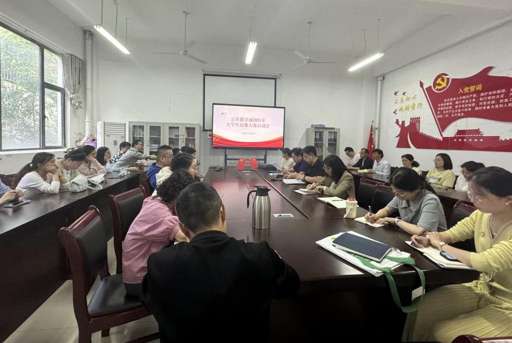 为统筹推进2025年大学生技能大赛备赛工作,深化“以赛促教、以赛促学”的教学理念,日前,公共教学部组织召开2025年大学生技能大赛启动会。大学语文、大学英语及劳动教育教研室全体教师参会,共同谋划本年度各项赛事的组织与实施。会议由公共教学部党总支书记、主持工作副主任张晓杰主持。会议首先全面回顾了公共教学部2024年各项竞赛在省校赛中的获奖情况。主要包括,大学英语教研室指导学生在“全国大学生英语竞赛”中斩获省...