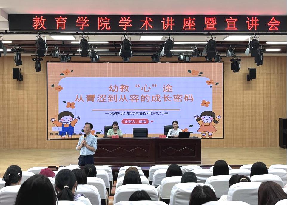 为进一步提升学前教育人才培养质量,紧密对接行业前沿需求,开拓优质就业渠道,教育学院于5月27日在报告厅举办幼教专题讲座暨就业宣讲会。全椒县十字镇中心幼儿园保教主任张媛媛与唐洁担任主讲嘉宾,2023级学前教育专业136位学生参加。唐洁聚焦一线幼教工作中的实际议题,围绕幼儿园新手教师常见问题、与家长的沟通话术以及如何提高工作效率等内容展开,通过结合丰富案例,为现场学生带来了极具操作性的实践锦囊,为同学们未来...