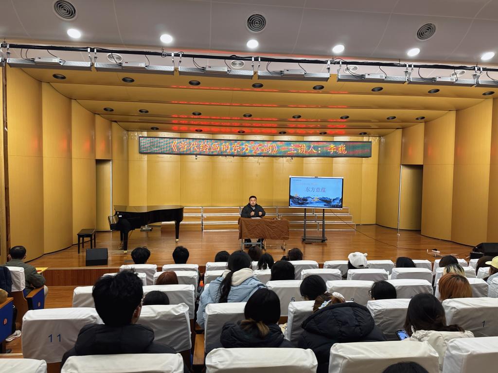 为传承中华优秀传统文化,弘扬中华美学精神,12月1日下午4点30分,艺术与传媒学院在音乐厅举办“当代绘画的东方意蕴”专题讲座。本次讲座由美术系副教授李巍主讲,美术专业师生及绘画爱好者共同参与。讲座中,李巍从习近平总书记关于文艺工作的重要论述谈起,围绕当代绘画“东方意蕴”的文化背景、逻辑与现象展开,系统梳理了中国油画“民族化”的发展脉络。从油画传入的早期探索,到几代美术工作者的创新实践,最后重点赏析当...
