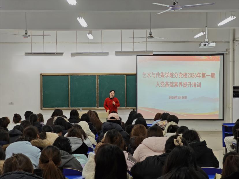 为筑牢入党积极分子思想根基、锤炼党性修养,1月16日至18日,艺术与传媒学院分党校举办2026年入党基础素养提升培训。培训以“理论学习+实践服务”为模式,覆盖24级入党积极分子及25级提交入党申请书的全体同学,为期两天半的培训,助力青年学子坚定信仰、践行使命。1月16日上午9时,培训动员大会在C1北1103教室正式启动,艺术与传媒学院党总支副书记陈之娟以“珍惜机遇,担当使命—在服务大赛中锤炼党性”为题作动员讲话。陈书...