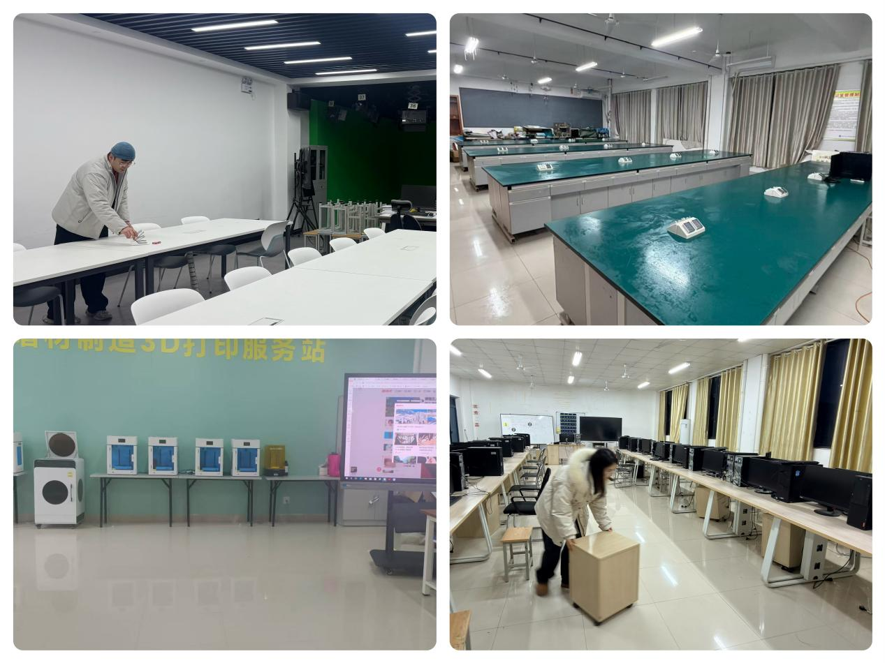 为营造整洁有序的实训环境,迎接学生返校,开学前夕,我院组织教师开展实训室清扫整治活动,以崭新面貌开启新学期教学工作。活动中,教师们分工协作、细致入微。大家手持清洁工具,对实训室内的地面、操作台进行清扫,清理卫生死角,同时排查安全隐患,对实训设备规范归置,确保设施设备完好可用。经过一番辛勤劳作,各实训室窗明几净、物品齐整,呈现出焕然一新的面貌。践行了“茅檐长扫净无苔,花木成畦手自栽”的整洁理念。...