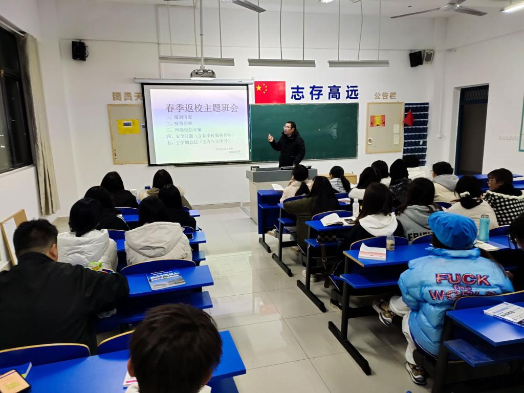为落实学校学生工作重要会议精神,落实立德树人根本任务,培养学生疫情防控意识和防诈骗能力,提升学生综合能力,帮助学生以良好精神面貌投入新学期的学习生活,管理与信息学院于2月20日晚19:10组织全院学生开展新学期入学第一课主题班会活动,主要议题涉及疫情防控、春季传染病的预防、警惕电信诈骗及学习学生管理相关制度等。首先班会期间,辅导员(班主任)介绍了发生在校园身边的真实案例,根据对案例的具体分析,告诉同学...