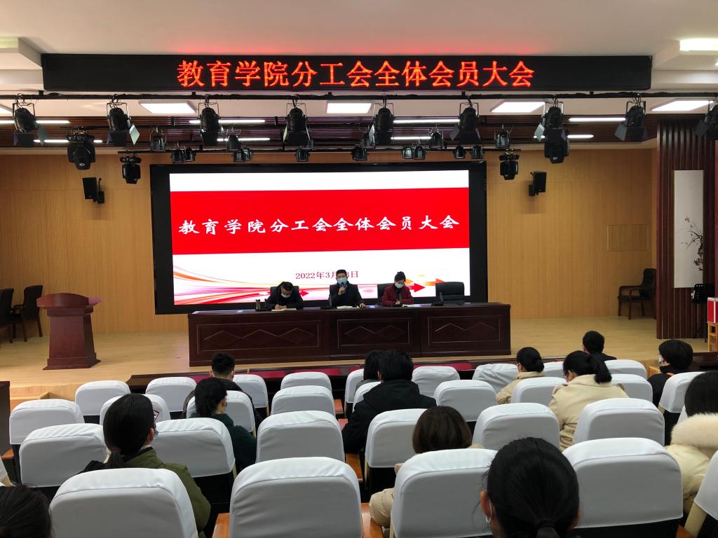 3月23日下午,教育学院分工会全体会员大会在教育学院报告厅召开。根据《中国工会章程》《高等学校教职工代表大会暂行条例》《工会基层组织选举工作条例》等有关规定和校工会部署安排,本次会员大会选举产生了第二届教育学院教职工暨工会会员代表、教育学院分工会第二届委员会委员。会议由教育学院党总支副书记、分工会主席徐立娟主持。教育学院党总支书记钱庆兵、副院长刘明辉及全体会员参加大会。大会伊始,钱庆兵再次强调全国...