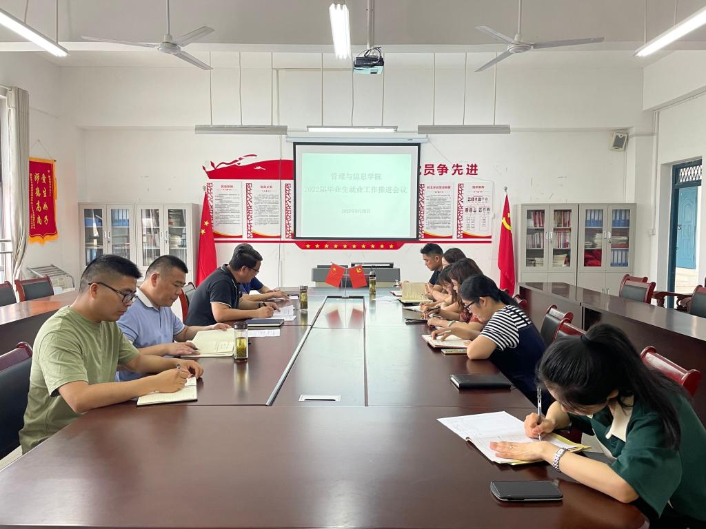 在就业工作关键阶段,为进一步落实《安徽省教育厅关于进一步推进高校毕业生就业工作的通知》的指示精神,为进一步做好我院2022届毕业生就业工作,管理与信息学院于6月20日上午在院会议室召开全体毕业班辅导员(班主任)工作会议,不能到校的班主任以腾讯会议形式参加,院党总支书记陈兴旺、学管秘书唐静以及2022届毕业班辅导员(班主任)参加会议,会议由陈兴旺主持。首先,陈书记传达了学院召开的就业工作会议精神,首先强调了...
