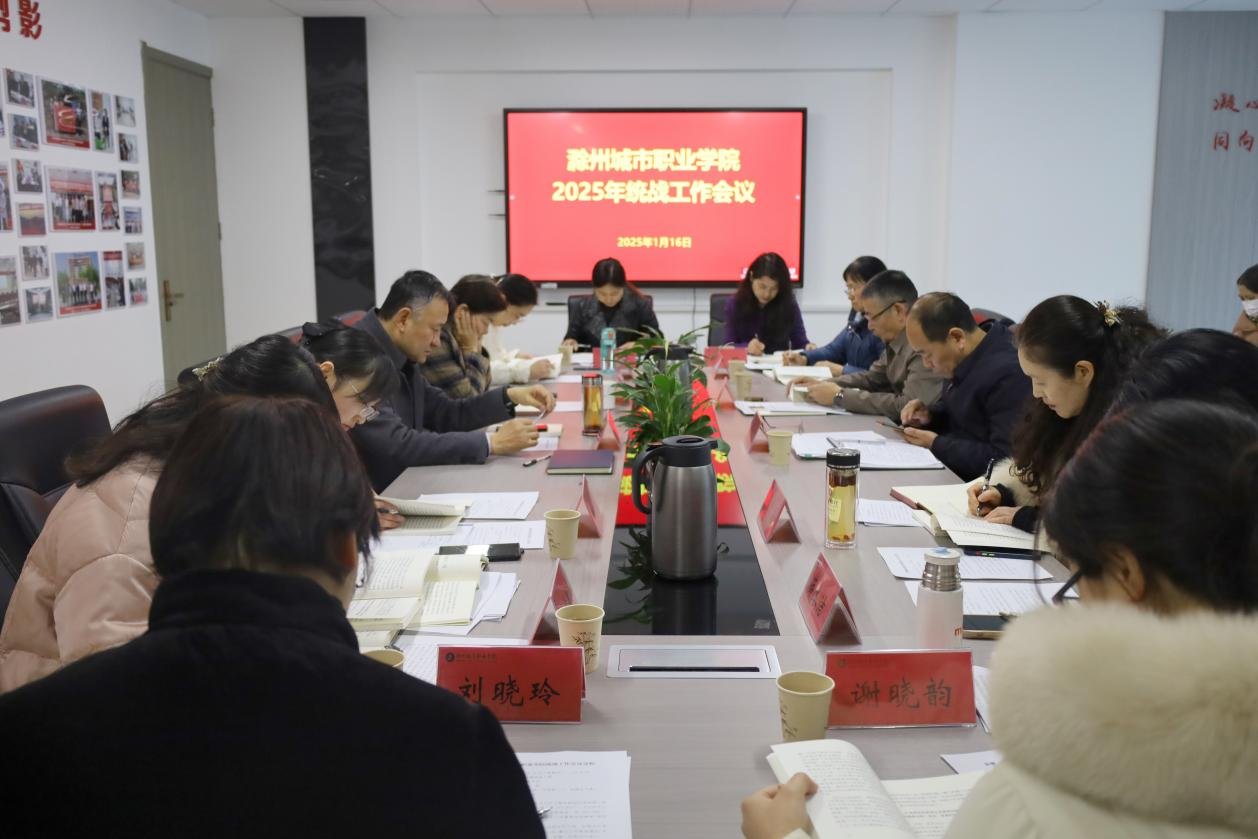 1月16日上午,学校统战工作会议在图文中心七楼统战之家召开,党委书记王燕永主持会议并讲话,党委副书记牛春雨,党委委员、组织人事处处长杨莹出席会议,各民主党派代表、无党派人士、知联会代表及宣传统战部相关人员参加会议。会上,传达学习了《习近平总书记关于做好新时代党的统一战线工作的重要思想学习读本》《习近平文化思想学习纲要》、习近平总书记在全国政协新年茶话会上的重要讲话精神等内容。与会代表结合自身岗位实...