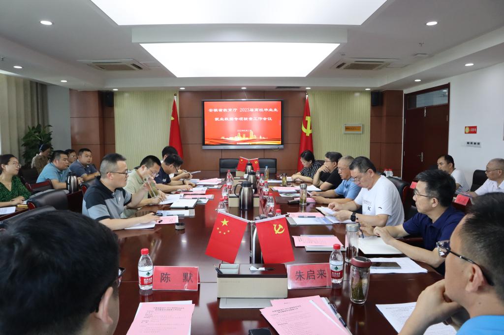 8月11日下午,安徽省教育厅核查工作组组长、安徽信息工程大学招生就业处副处长杨文宝一行4人到我校开展2023届毕业生就业数据专项核查。校党委委员施向阳,各二级学院党总支负责人,招生就业处全体成员、就业指导中心工作人员参加会议。会上,施向阳代表学校对省教育厅核查工作组的到来表示欢迎。他表示,学校高度重视毕业生就业工作,多次召开专题会议部署、推进、调度就业工作,按照省委省政府,省教育厅的相关要求,积极落实...