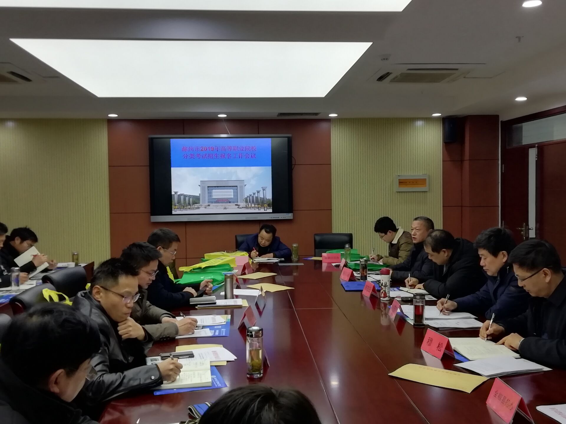 2月26日,滁州市2019年高等职业院校分类考试招生报名工作会议在我院召开,会议由市教体局招生办主任陈敬岳主持,六县二区招生考试机构负责人、市区生源学校分管主任等参加了会议。
