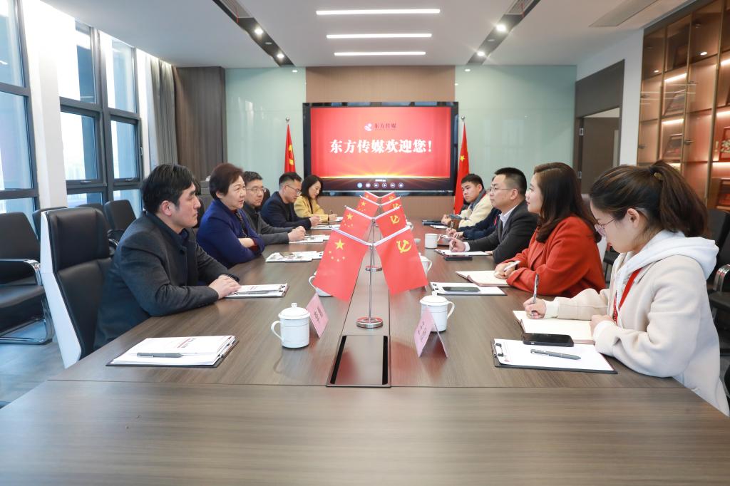 最后,张志华一行来到皖东地区最具潜力的传媒企业之一——东方传媒有限公司。该公司总经理徐德飞详细介绍了公司经营理念和管理举措,现场展示了公司在微视频广告制作方面的突出成果。该公司党支部书记王婷还介绍了企业“六亮”行动方案、党建品牌创建情况。张志华一边观看企业党建品牌创建成果,一边叮嘱同行人员,要虚心学习企业好做法好经验,加强校企双方在管理模式、专业技能等方面深度合作与交流,不断提升人才培养质量。