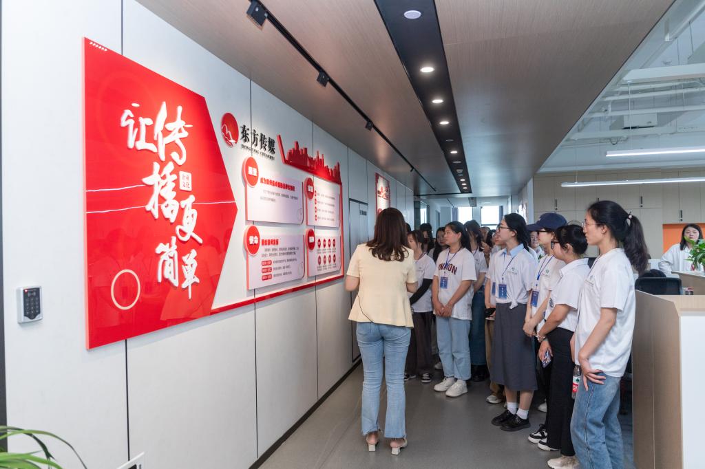 在东方传媒,负责人带领同学们先后参观了工作区、企业文化区、党建活动区等各个功能区,介绍了公司架构、招聘条件待遇与未来发展前景,并观看了企业宣传片。最后,东方传媒表示欢迎我校学子踊跃应聘,共同开创新媒体新时代。