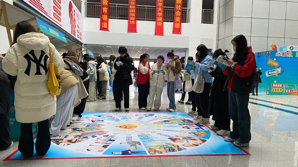 为深化大学生生涯发展教育,提升大学生的职业规划意识,引导我校2024级新生科学合理规划学业与职业发展,11月20-21日,我校在图文中心二楼大厅举行2024年职业规划嘉年华活动,活动吸引了3700余名学生及有关老师参与。校领导王燕永、汪上、曹士东、池鹏等莅临现场,了解活动的核心理念,指导体验活动。