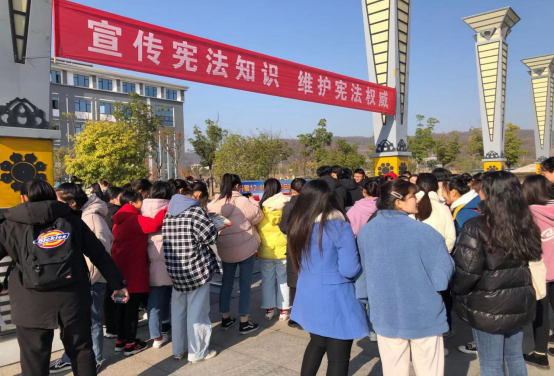 为弘扬宪法精神、维护宪法权威,树立宪法至上的理念,按照学院宪法宣传周活动要求,12月4日上午,院办公室、保卫处在校园南广场开展宪法日宣传教育活动。