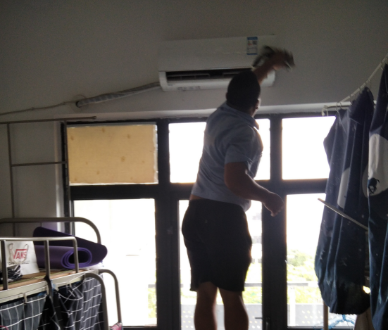天气炎热,为了保障开学后空调能更好的使用,为学生的学习和生活做好服务。总务处精心组织统一部署,充分利用暑假时间,组织空调维保单位,冒着高温酷暑,对全院学生宿舍的一千多台空调的内机过滤网进行清洗、内外机灰尘进行清洁、整机运行进行压力测试、对外部螺栓螺钉进行检查、对内外机蒸发器冷凝器进行清洗,并对空调的安全性、故障进行检查、诊断及处理。