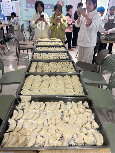 在活动过程中同学们分工明确、热情高涨,一个个造型各异的饺子在大家的手中呈现出来,尽管水饺有大有小、形态各异,但是浓浓的“情谊”都包在了饺子里,大家边吃饺子边聊天,共同感受节日温暖、集体的温馨。