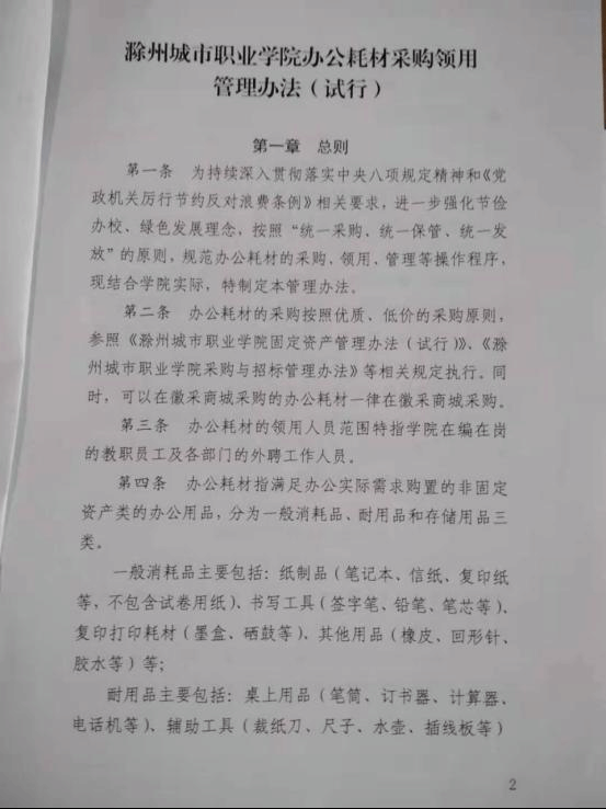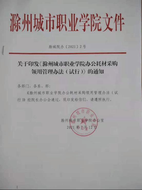 关于印发《滁州城市职业学院办公耗材采购领用管理办法(试行)》的通知